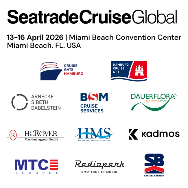 Die weltweite Leitmesse der Kreuzfahrtbranche trifft sich vom 13.-16. April 2026 auf der Seatrade Cruise Global in Miami Beach. Hamburg ist mit 11 Ausstellern und einem eigenen Stand als Satellitenstand des „German Pavilion“ mit dabei.